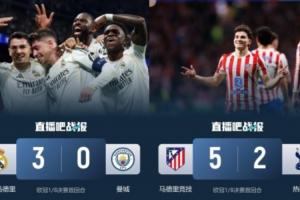 其中皇馬送給曼城3-0的慘敗,馬競(jìng)送給熱刺5-2的慘敗,巴薩則是客場(chǎng)1-1平紐卡。目前三隊(duì)晉級(jí)歐冠8強(qiáng)的概率都高于對(duì)手。