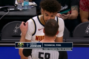 GIF-卡梅隆·約翰遜對卡斯爾犯規,裁判回放補吹技術犯規