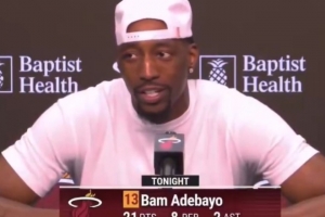 體育資訊3月13日訊 NBA常規(guī)賽,熱火主場112-105擊敗雄鹿,阿德巴約賽后接受了媒體采訪。