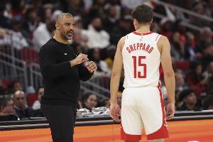 談及申京因傷缺陣,球隊(duì)啟用芬尼-史密斯擔(dān)任首發(fā),沒有安排謝潑德或者卡佩拉進(jìn)入首發(fā)陣容的決定,烏度卡說道:“我們既沒讓謝潑德這樣的小個子首發(fā),也沒讓卡佩拉這種大個子首發(fā),就是為了能無限換防對手相對小一些的陣容?!?/p>