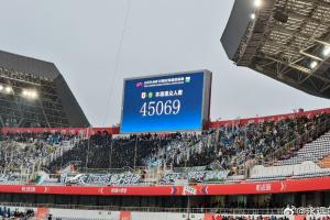 體育資訊03月14日訊 中超第2輪,山東泰山主場對陣北京國安的比賽正在進行。現場大屏幕顯示,本場比賽的到場人數為45069人。