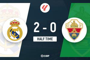 體育資訊3月15日訊 北京時(shí)間3月15日凌晨4時(shí),西甲第28輪,皇馬坐鎮(zhèn)伯納烏球場迎戰(zhàn)埃爾切。上半場,巴爾韋德任意球造險(xiǎn),呂迪格破門首開紀(jì)錄,隨后巴爾韋德擴(kuò)大領(lǐng)先優(yōu)勢(shì)。半場戰(zhàn)罷,皇馬暫2-0埃爾切。