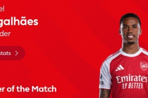 本場(chǎng)比賽加布里埃爾首發(fā)出場(chǎng)發(fā)揮穩(wěn)健,貢獻(xiàn)8次解圍,賽后當(dāng)選英超官方評(píng)選出的本場(chǎng)比賽最佳球員。