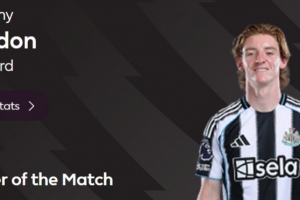 本場比賽紐卡前鋒戈登打進全場唯一進球,賽后他也當選英超官方球迷票選全場最佳球員。