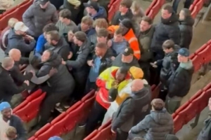 比賽結(jié)束后,埃弗頓球迷所在的看臺發(fā)生了混亂,埃弗頓球迷互相毆打。