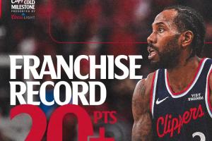 倫納德單賽季連續45場比賽得分20+,超越鮑勃·麥卡杜(1974-75賽季,連續44場)獨占快船隊史第一。