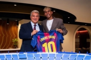 亞馬爾在社交媒體上曬出與拉波爾塔的合照,對此拉波爾塔說道:“亞馬爾發的照片讓我深受感動,我非常感謝他。”