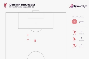 索博斯洛伊本賽季在英超聯賽中已經直接通過任意球打入四球。此前,貝克漢姆(2000-01賽季)和勞倫特·羅伯特(2001-02賽季)在一個英超賽季中通過任意球打入五球。
