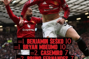 曼聯(lián)官推曬出了舍什科、姆伯莫、卡塞米羅、B費以及庫尼亞等5人的進球數(shù),并發(fā)問:誰將贏得隊內射手王之爭?目前,舍什科和姆伯莫以10球并列榜首,卡塞米羅、B費和庫尼亞均打進7球。