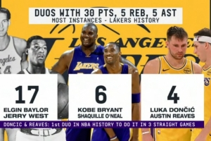 東契奇和里夫斯連續(xù)三場同場30+5+5 歷史首對隊友