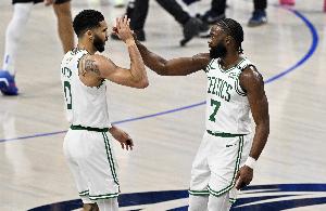 本場(chǎng)比賽杰倫·布朗20中10、21罰19中砍下41分7板6助;塔圖姆18中8砍下21分7板4助。
