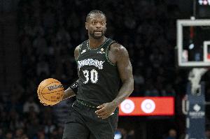 森林狼球員蘭德爾上半場(chǎng)發(fā)揮穩(wěn)健,進(jìn)攻端效率不錯(cuò),場(chǎng)上拼搶也十分積極。